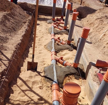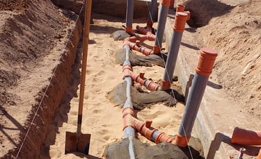 تنفيذ شبكات المياه والصرف الصحي باستخدام أنظمة متطورة تضمن الكفاءة وتقليل الفاقد.