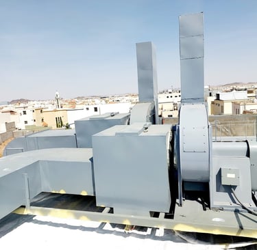 تنفيذ مجاري الهواء (Ducting) وأنظمة التحكم بدرجات الحرارة، مع مراعاة تقنيات توفير الطاقة.