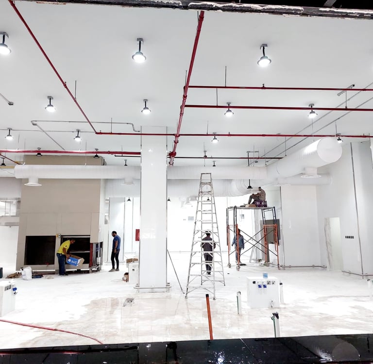 تنفيذ أنظمة الإطفاء اليدوي والآلي وفق اشتراطات الدفاع المدني.